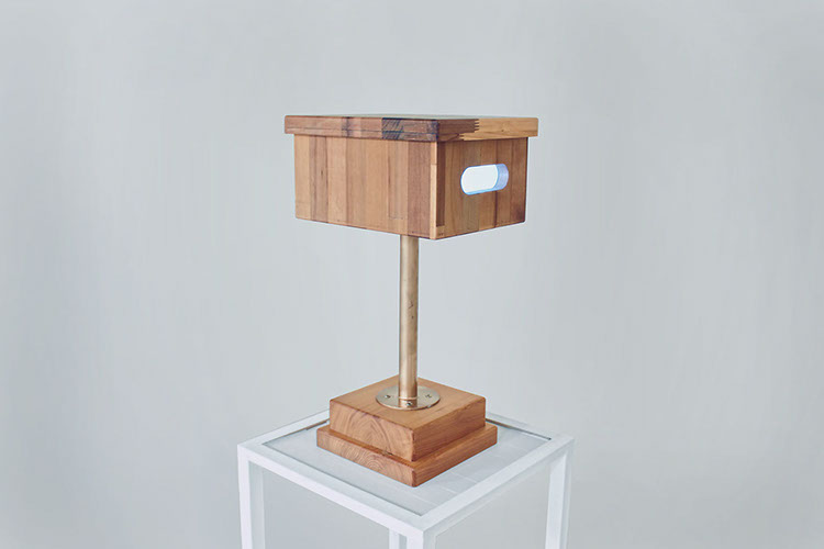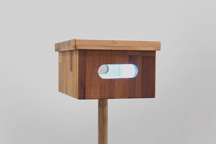 起初的嘗試我在裝置一側放入父母眼睛的錄像,另一側則是參與裝置觀看的人,並利用半反射鏡與兩邊燈光ㄧ明ㄧ滅的交會過程,將兩者眼睛的影像停留在裝置中。在不斷有人參與後,我意識到:裝置內父母的錄像,對別人來說不過是一雙陌生的眼睛,參與者也難與我一樣對那雙既熟悉又陌生的眼睛產生共鳴。