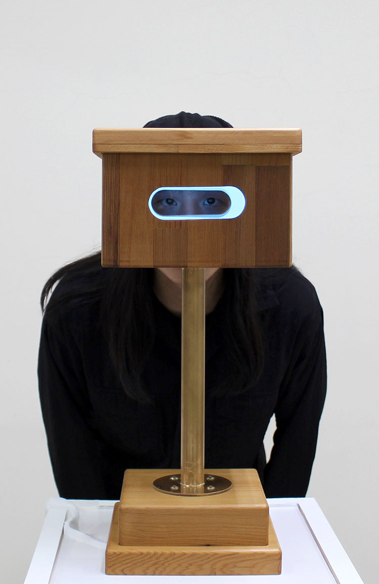 此外,旁觀的人可以透過裝置內攝影機的轉播觀看裝置內正在發生的影像,參與者也同時成為了作品的一部分,如果兩人認真對視,從看著自己的眼睛接著到兩者眼睛慢慢融合、重疊最後再望向對方的眼睛,我認為是一個很有故事的畫面。